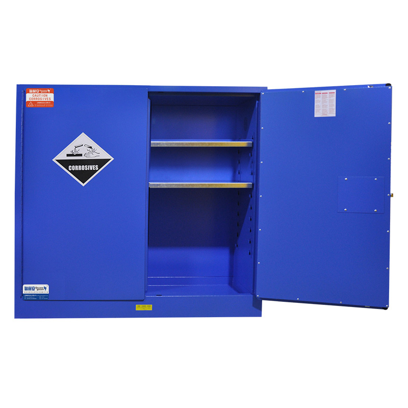 產品介紹:是指容積為110加侖/410升的一種用于存放弱腐蝕性液體的藍色安全柜。