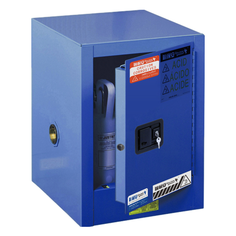 是指容積為4加侖/15升的一種用于存放弱腐蝕性液體的藍(lán)色弱酸堿小型防爆柜。防爆柜符合CE、EN認(rèn)證,固耐安防火防爆柜廠家致力做好,價(jià)格實(shí)惠。