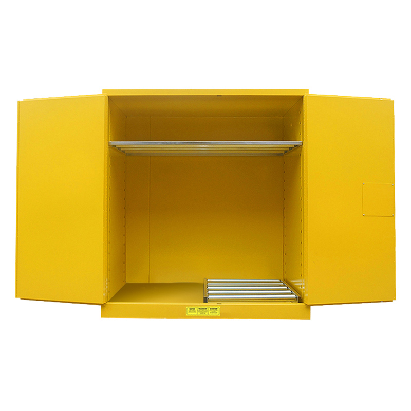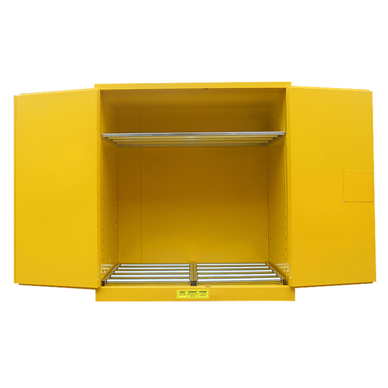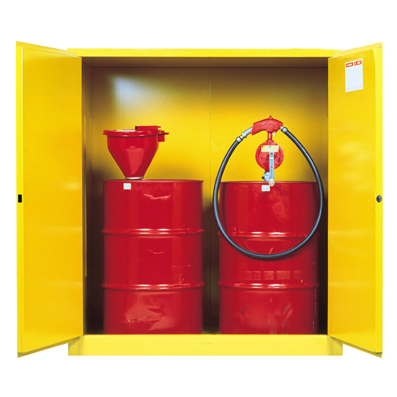 產品簡介:是指可以存放兩個200L圓桶的油桶防爆柜,是雙開門,可配油桶滾筒底座等。
