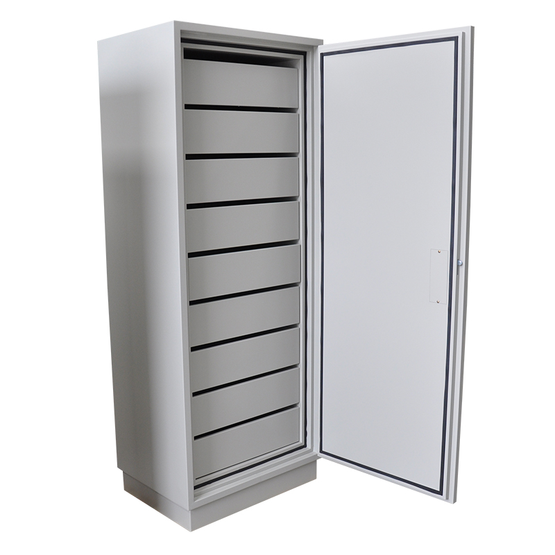 9抽屜320型防磁信息柜是一種具有9個抽屜的防磁柜,又稱為防磁信息柜,防磁安全柜,多用于磁盤、磁帶、微縮片、膠卷、錄音帶、錄像帶及U盤等磁介質(zhì)檔案資料的存儲。